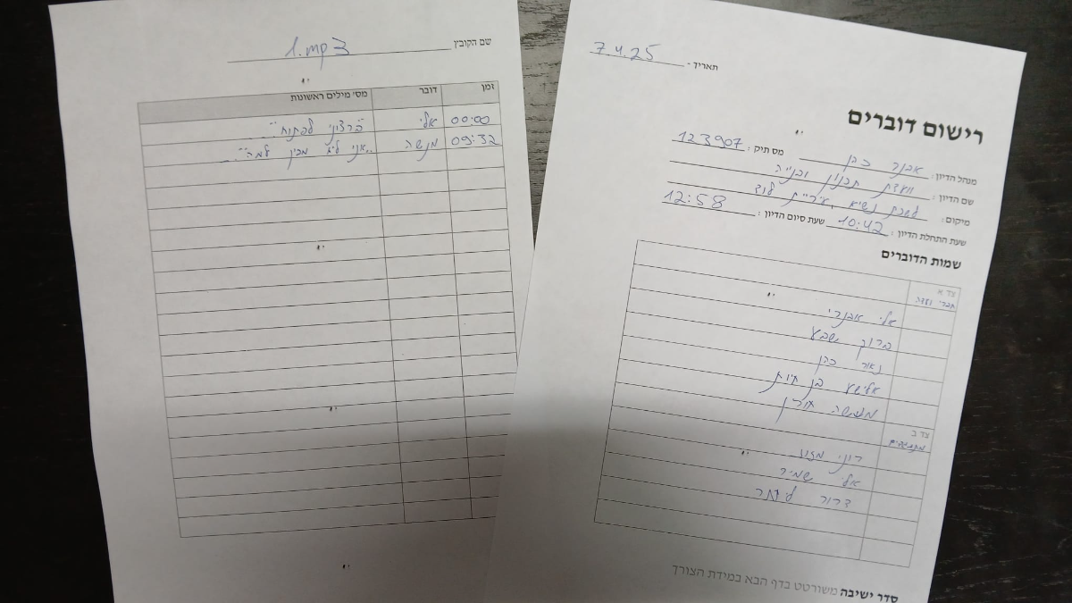 תמלול דיוניםבתי משפט, בוררויות, וועדות, דיוני עירייה ועודתמלול דיונים הוא תהליך הפיכת הקלטה קולית של דיון לטקסט כתוב ומשמש כתיעוד למטרות משפטיות , עסקיות, אקדמיות ואישיות השירות כולל דיוק, זיהוי דוברים, סימון זמנים, ולעתים תרגום, ומתבצע ידנית ע'י מתמללים מקצועיים לוחות זמנים אנו מציעים שירותי תמלול איכותיים תוך שמירה על דיסקרטיות אנו בעלי ניסיון של שנים בתחום ומתמחים בהגשת תמלול הקלטות בלוחות זמנים קצרים של שבעה ימי עסקים סוגי תמלול משפטי - תמלול דיוני בית משפט, חקירות ובוררויות, דורש דיוק מרבי ועמידה בסטנדרטים פורמליים, כולל הגשת תצהיר על ידי מתמלל מקצועי. עסקי ופיננסי - תיעוד ישיבות דירקטוריון, פגישות הנהלה, כנסים, ושיחות ועידה. אקדמי ומחקרי - תמלול ראיונות עומק, קבוצות מיקוד, והרצאות עבור עיתונאים וחוקרים. מדיה ותוכן דיגיטלי - יצירת כתוביות (SRT) לפודקאסטים, וובינרים, וסרטוני וידאו. עלויות תמלול מחיר 12 שח לדקת דיון - עד 2 משתתפים מחיר 15 שח לדקת דיון - בין 3-6 משתתפים מחיר 18 שח לדקת דיון - 7 משתתפים ומעלה קובץ תמלול הדיון ינתן בפורמט pdf + docx תוספת הקלטה הגעת מקליט למיקומכם עם ציוד מלא ![]() ![]() ![]() ![]() ![]() |