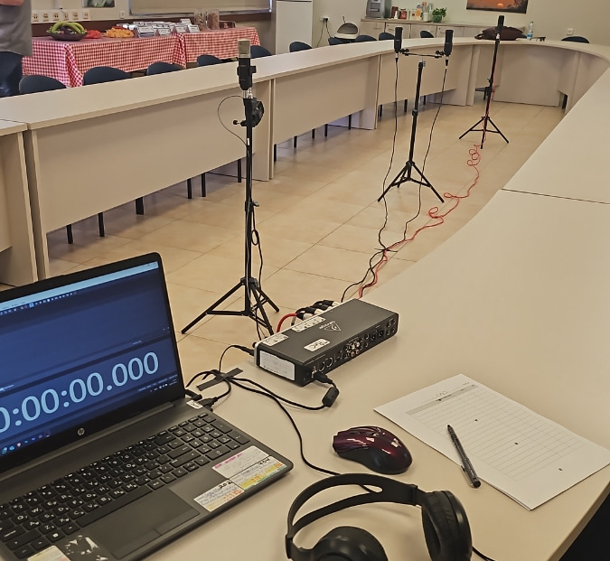 מחשב נייד עם אוזניות לבקרת ההקלטה